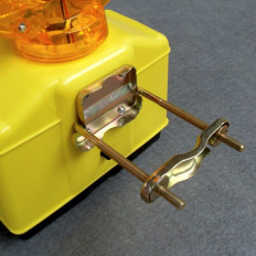 Produtos complementares para instalação e suporte de sinalização em obras, como balizas de alinhamento metálicas de uma ou duas faces, essenciais para a correta fixação e visibilidade das placas de sinalização.